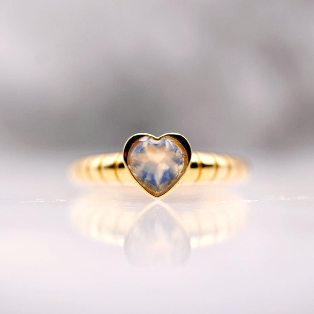 1.00 carat Rainbow Moonstone Sweetheart Ring set in 14k solid gold. Pristine rainbow moonstone heart shaped gemstone. A Love Tatum best seller! add this beauty to your collection!