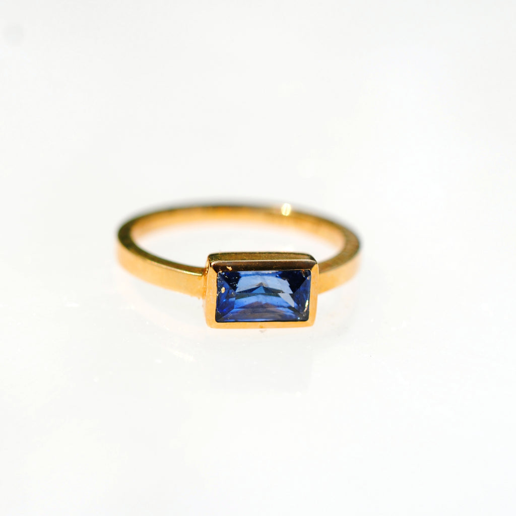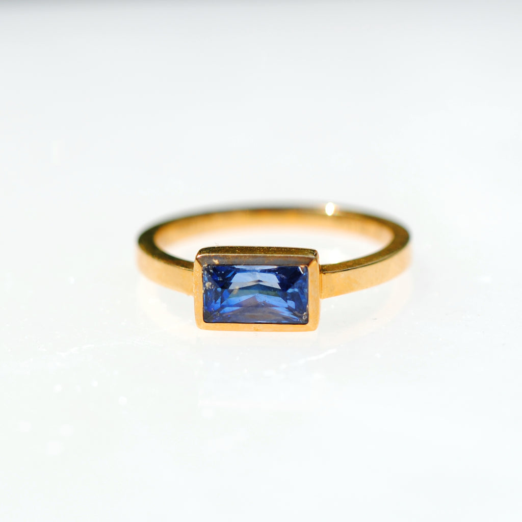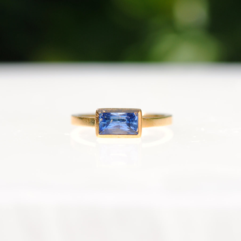 Love Tatum 18k Yellow Gold 1.13 carat Tanzanite Baguette Ring, size 6. The perfect modern ring for all occasions.